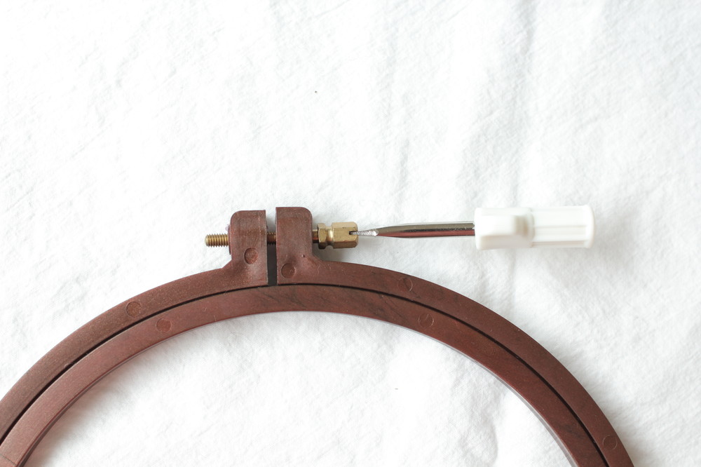 As you punch the needle up and down, it is recommended to use a hoop holding a fabric tightly for a punch needle.